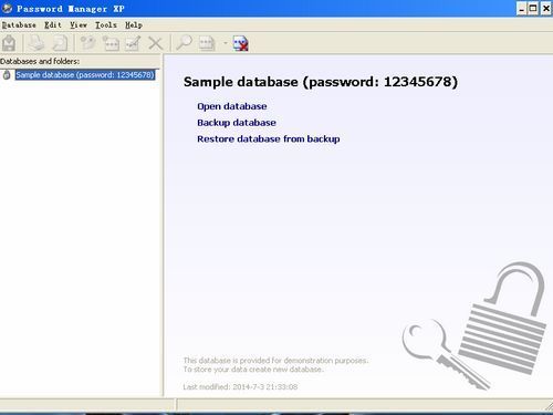 是一个可以让你将私密资料系统化并储存在计算机里的程序。它将是你的密码和信息的秘密护卫。透过一个密码管理公用程序来保护你的私人数据。Password Manager XP允许你将秘密的信息储存在许多数据库中。