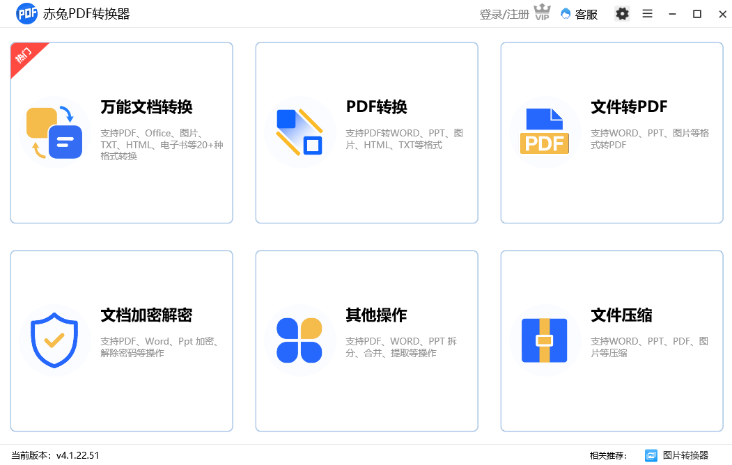 赤兔PDF转换器,是一款集文档转换、加密、解密、拆分、合并、图片合并,提取图片等功能为一体的多功能文档转换器工具软件。