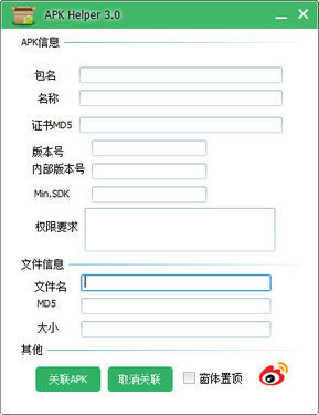 一款可以直接在Windows下查看APK详情的小程序,功能简单却颇为实用,可以显示APK对应的包名、应用名、图标、版本、SDK/API级别(支持系统版本),特别是会完整列出所需权限、应用签名信息。