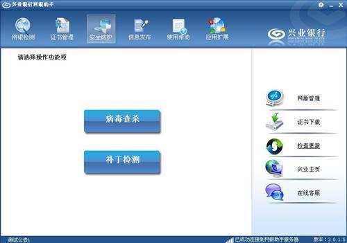 兴业银行的网银助手软件,是一款检测环境,证书管理,扩展下载软件