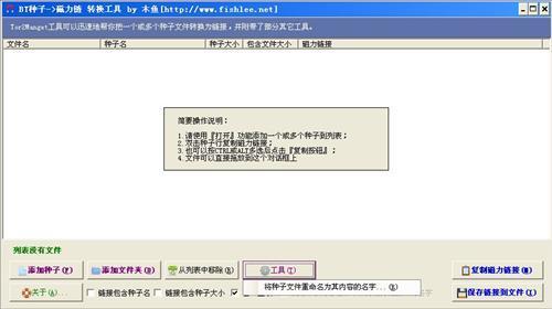 bt种子转磁力链工具是一款小工具,可以协助你将bt种子批量转换为magnet磁力链接。同时,这个工具还附带个功能,可以将你的种子文件重命名为其内容的名字