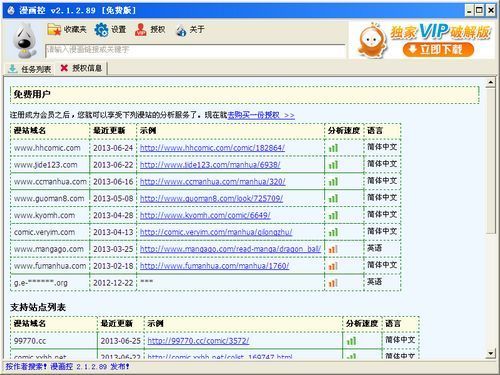 在线漫画的分析下载程序。它采用了十分新颖的链接分析技术,使得漫画链接的分析流程和漫画控主程序是完全分离的。换句话说,您只要打开漫画控的主程序,就能够通过和漫画控网站的交互而获得最新的漫画链接分析支持服务。