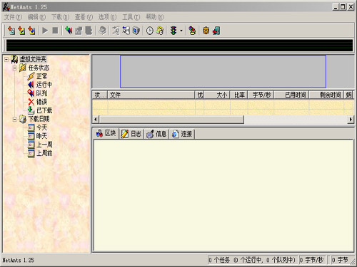 国产的多线程下载文件的工具。网络蚂蚁的特色在于:它进一步扩展了多点连接、断点续传、计划下载等功能,可进行多点传输。 新特性:支持外挂资源包,拖放篮的下载速度显示,支持IE的HTML文本拖放,处理HTML文本文件等多项超COOL功能,使你在现有的条件下,大大地加快了下载的速度。由于这个下载软件用蚂蚁搬家来象征它从网络上下载数据,因此称为网络蚂蚁。